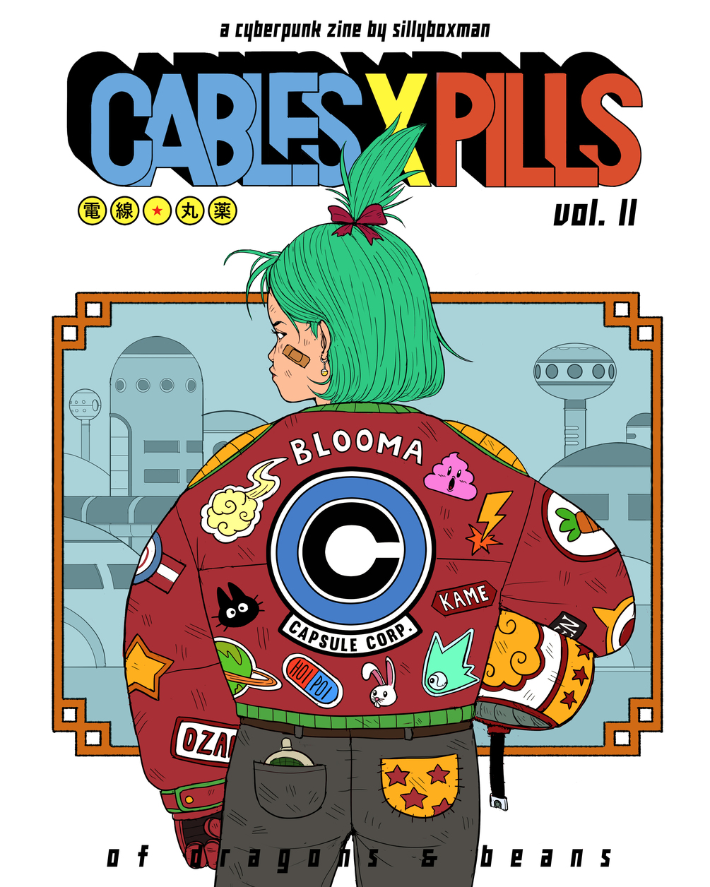 The CABLES X PILLS ZINE is back! Volume II of my cyberpunk fanzine is out, this time as a tribute to Akira Toriyama's work. 40 pages of cool drawings, get yours now!